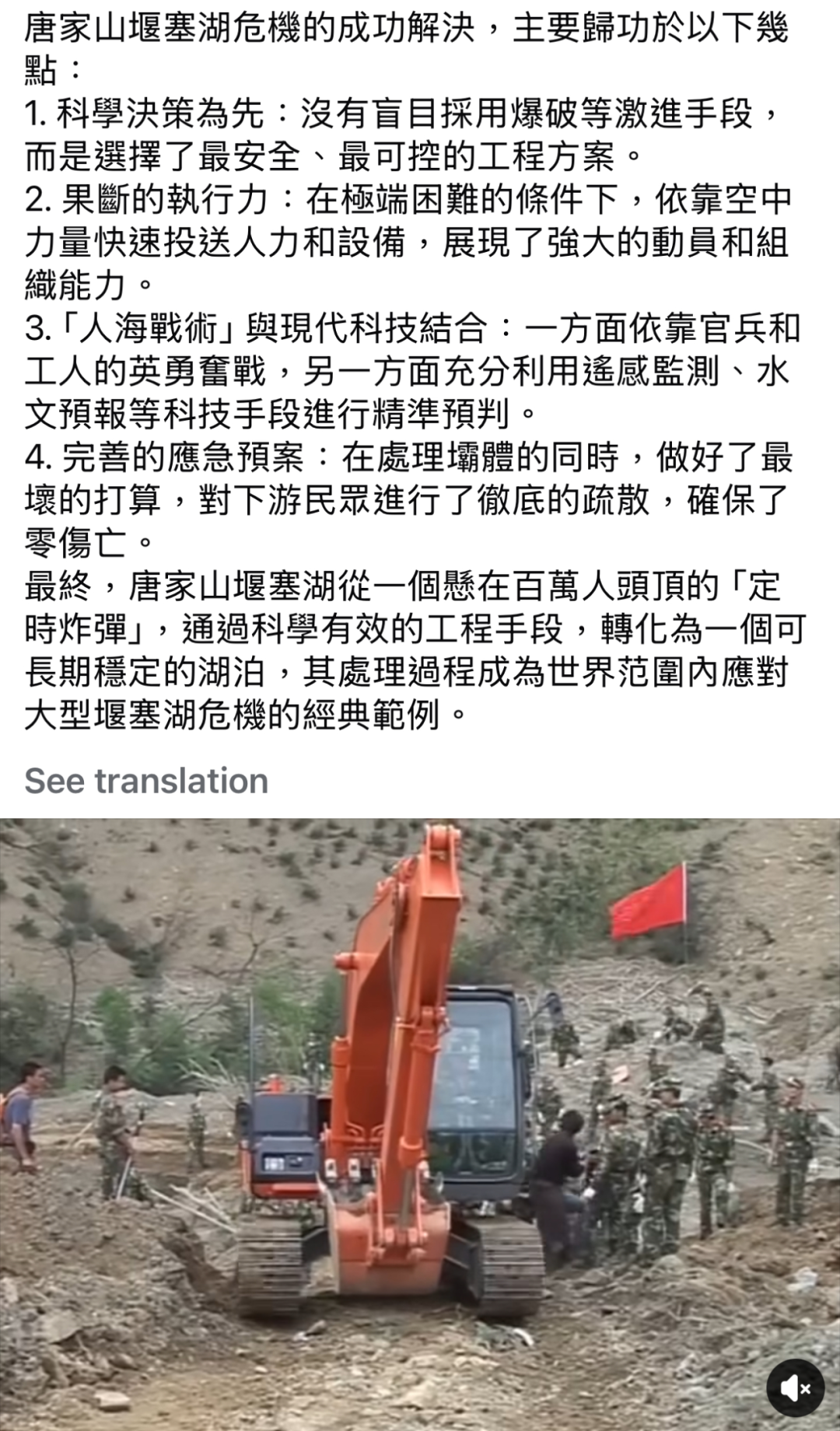 于是,“堰塞湖真的无解吗”这条灵魂拷问,被台湾网友疯狂转发,热门视频都是解放军举着旗帜,深入山区艰苦工作的场面。