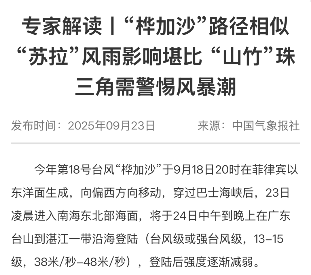 9月中,关岛以西的太平洋上空,诞生了今年首个超强台风“桦加沙(Ragasa)”。几天之内,东南亚各地区的台风检测中心开始陆续提升对桦加沙的警戒,并宣告这波台风为今年以来记录之最强。各地均不敢懈怠,皆提前部署,严阵以待。