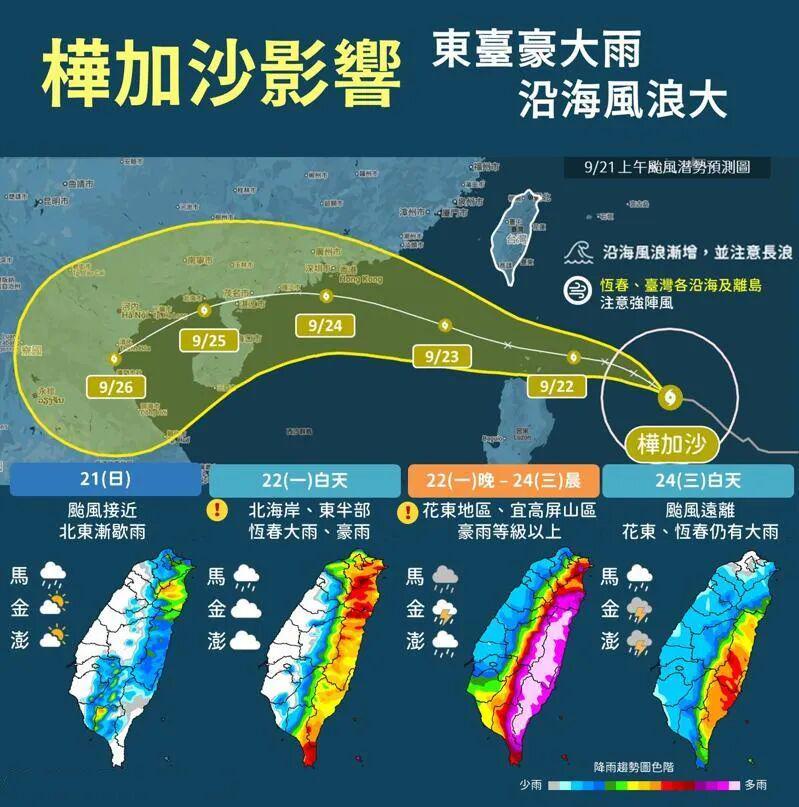 桦加沙和台湾岛,其实只有擦肩而过,带来的强降雨区域并没有击穿台湾本岛。因此这一波,台湾当局都以海上警报为主,并未发布大规模的陆上警报。